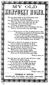 My Old Kentucky Home (Foster, 1853) - Stephen Foster's anthem recounts "Uncle Tom's Cabin" in three verses.